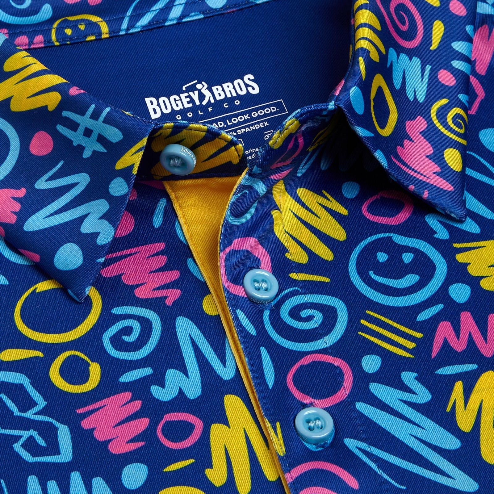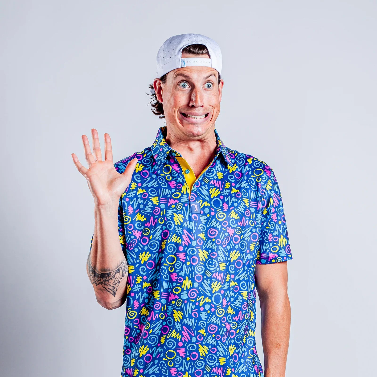 Stand out both on and off the course with the Booyah Polo from our Da 90’s Collection—a lively, retro burst of neon shapes, energetic flair, and major attitude. Booyah! Look like a pro even if your game needs help, thanks to our ultra-stretchy, tagless polos designed for all-day comfort. The breathable, top-quality fabric keeps you dry and fresh, while UPF 50 sun protection shields you during your quest for those hard-to-find lost balls.