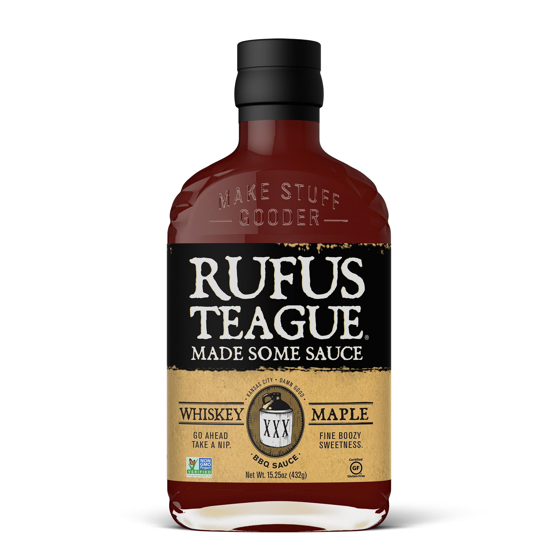 Old Rufus whipped up this sauce using real maple syrup and some of his favorite hooch. It has a fine boozy sweetness that’s perfect for grillin’, dippin’ or drinkin’ straight out of the bottle.